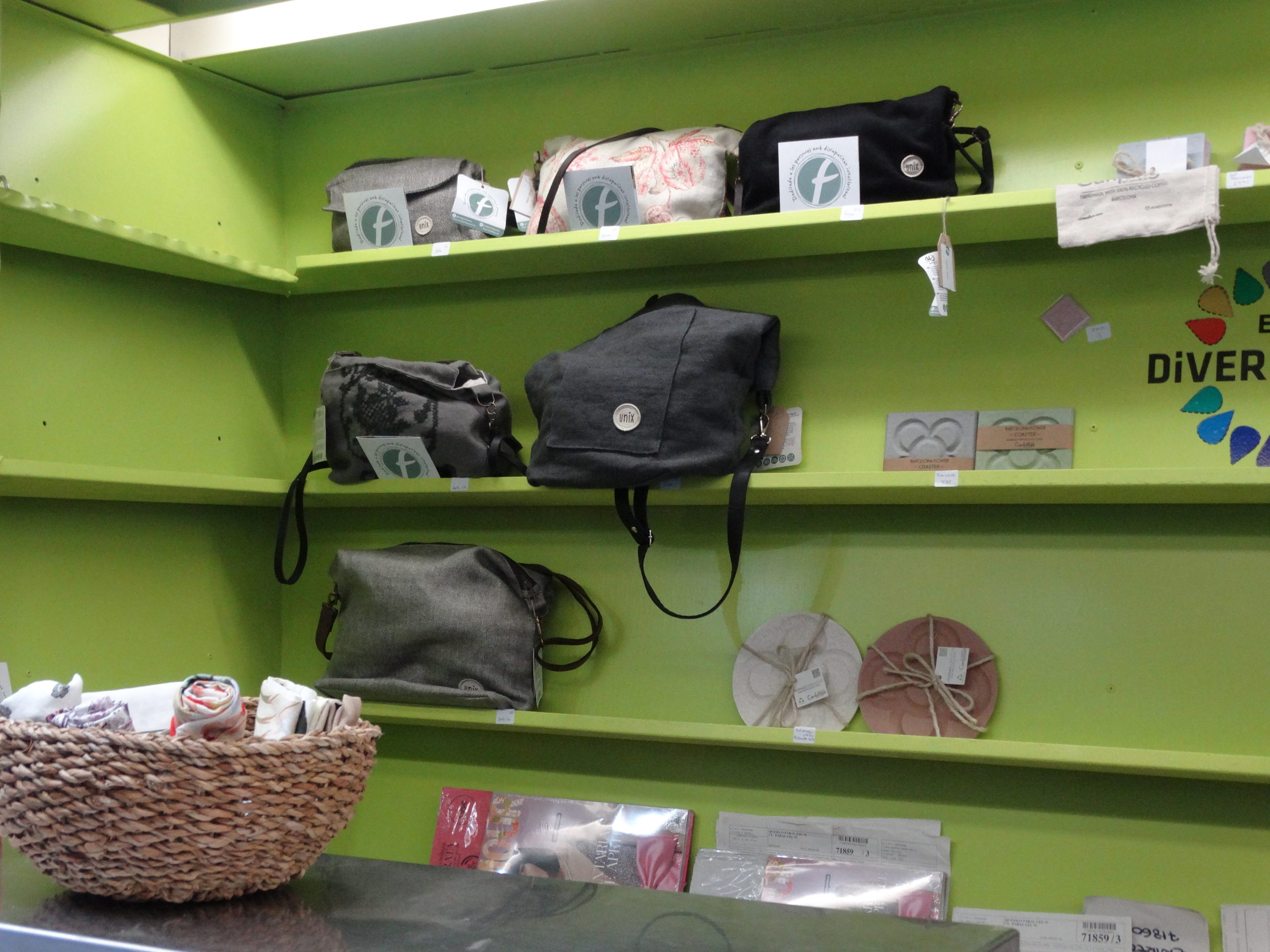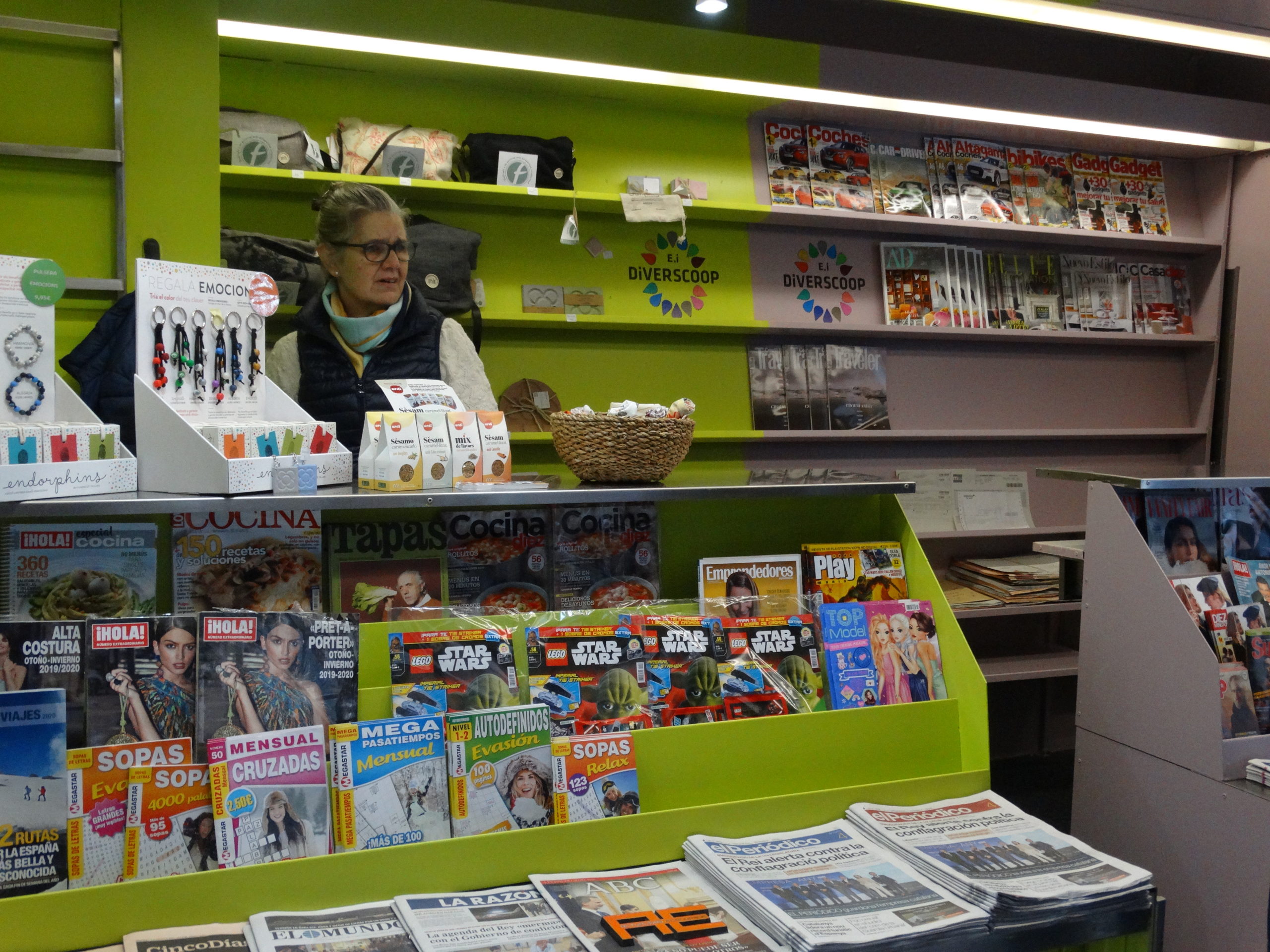 Les onze persones que formen la cooperativa han estat un any formant-se, han fet pràctiques i rebut assessorament d’altres quiosquers per aprendre a gestionar aquest tipus de negoci. A més a més, tal com indica Mercè Carrera, membre de Diverscoop, “és un quiosc que ofereix diversos serveis i productes, des de les revistes i diaris que tots tenen fins a productes solidaris i ecològics fets per entitats socials i persones amb discapacitats”. Podem trobar des de clauers o bosses fins a embolcalls de tela reutilitzables pels entrepans. També, oferiran un servei especial per a la gent més gran. “Els hi durem els diaris a casa perquè no s’hagin de desplaçar” ha explicat la Mercè.