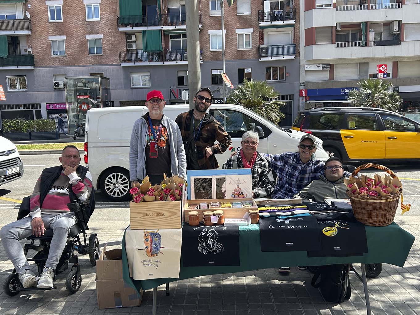 “Oye, acuérdate que hoy es el día de la rosa” —crida un home pel telèfon mentre arrossega un carro de la compra. És el matí del 23 d’abril i l’ambient ja comença a fer olor de Sant Jordi. L’home baixa pel Passeig de la Zona Franca, i aviat comprovarà que la ciutat avui és més florida que mai: a les voreres han aparegut paradetes de roses com bolets després de la pluja.