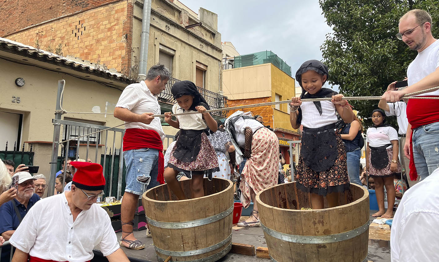 La posterior verema i la pertinent degustació del most va fascinar a coneguts i aliens, que animaven als petits a trepitjar amb força per extreure el deliciós suc dels centenars de kilograms de raïm que l’Associació de Veïns i Veïnes de Plus Ultra havia preparat.