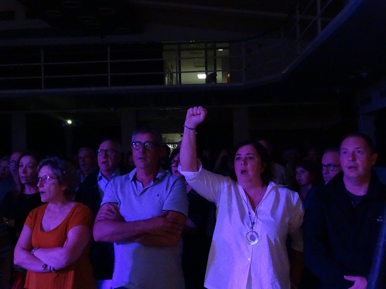 L’acte va concloure amb la lectura del llistat de “tots aquells que avui no poden ser aquí” a càrrec dels consellers d’Esquerra al districte de Sants-Montjuïc, on es van incloure els presos polítics, exiliats i els detinguts en aquestes darreres setmanes, i amb el cant dels Segadors.