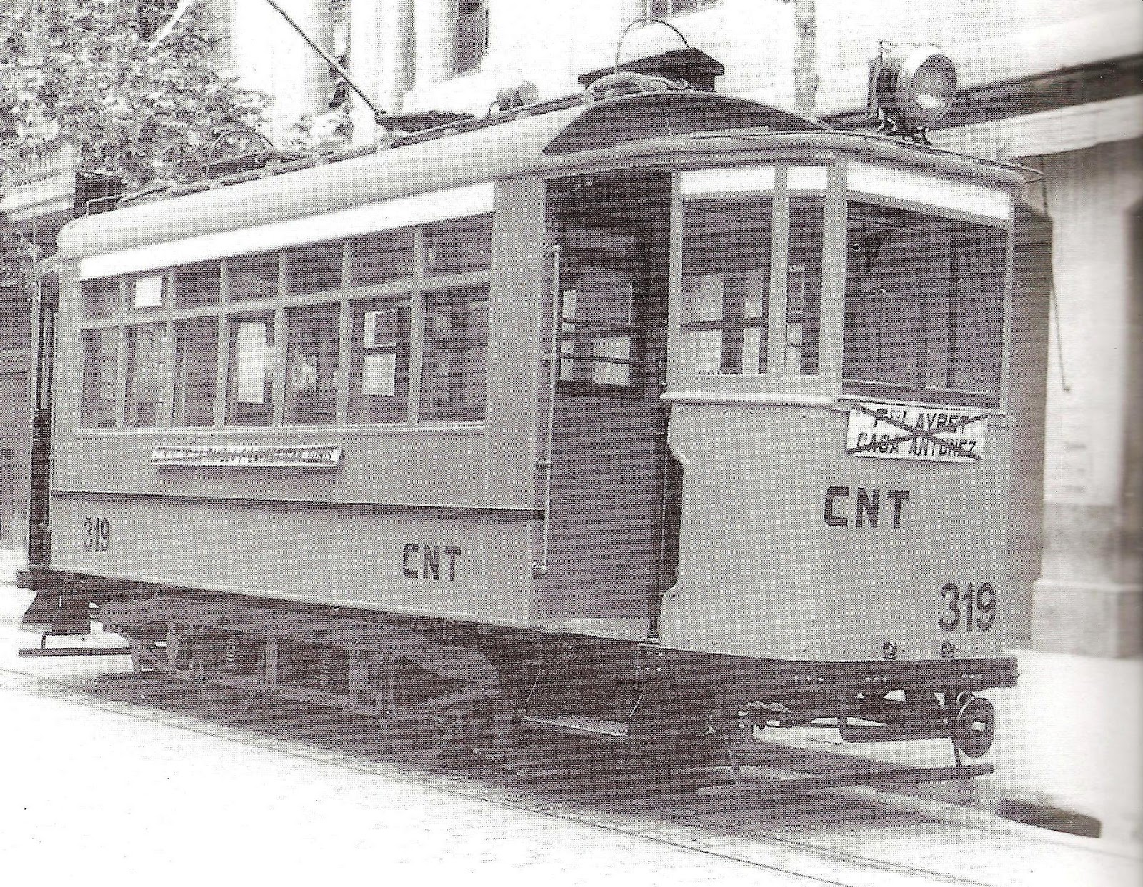1936-39. Tramvia 48 incautat per la CNT durant la guerra civil.