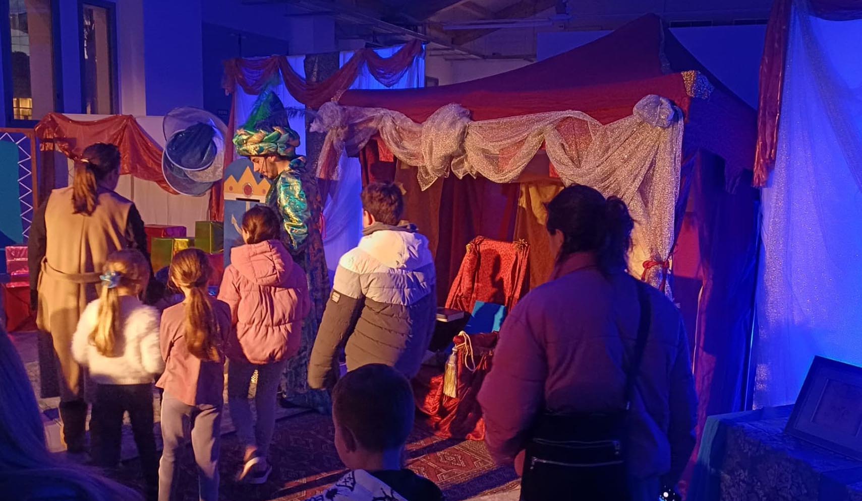 A partir d’aquí, els infants eren rebuts per la Validadora de cartes, que comprovava que les cartes als Reis estiguessin a punt abans de passar-les al Grumet Reial, alhora que explicava la història dels tinglados, antics magatzems portuaris avui reconvertits en espais culturals. Un altre dels moments destacats va ser la Vela dels Desitjos, una gran estructura on els nens i nenes penjaven els seus anhels, guiats per la Mossa del magatzem, que relatava com s’organitzen els regals perquè cada infant rebi la seva sorpresa a la nit més màgica de l’any.