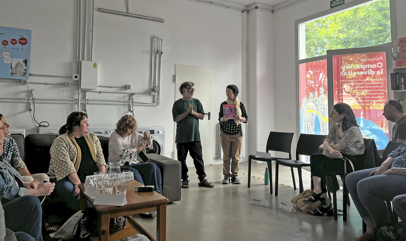 La xerrada va ser dirigida per Tomoko Sakamoto i David Lorente, arquitectes, editors d’aquesta obra i veïns de La Chalmeta, que van convidar a residents d’altres propostes col·lectives de la ciutat a una trobada per posar en comú els reptes, dificultats i vivències resultants de ser usuaris i usuàries d’aquest model d’habitatge.