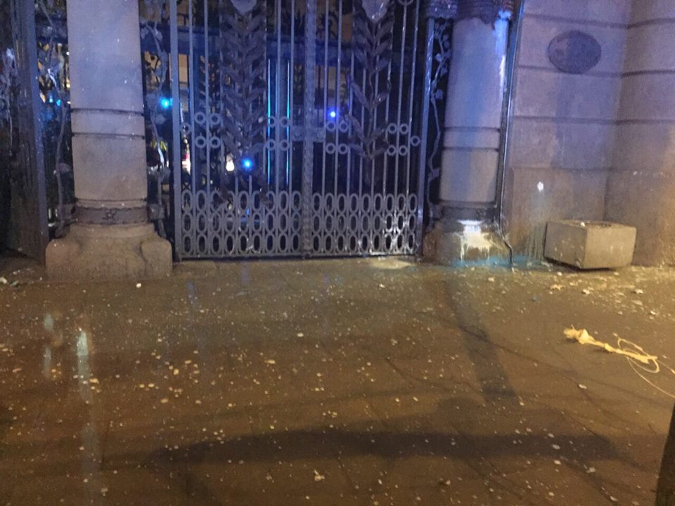 L’atac més remarcable és el sofert a la façana principal de la seu del Districte, ja que aquest és un edifici catalogat construït amb pedra de Montjuïc en el qual les taques de pintura que li han produït són de difícil reparació, donat que aquest tipus de pedra porosa requereix una intervenció de neteja complicada.
