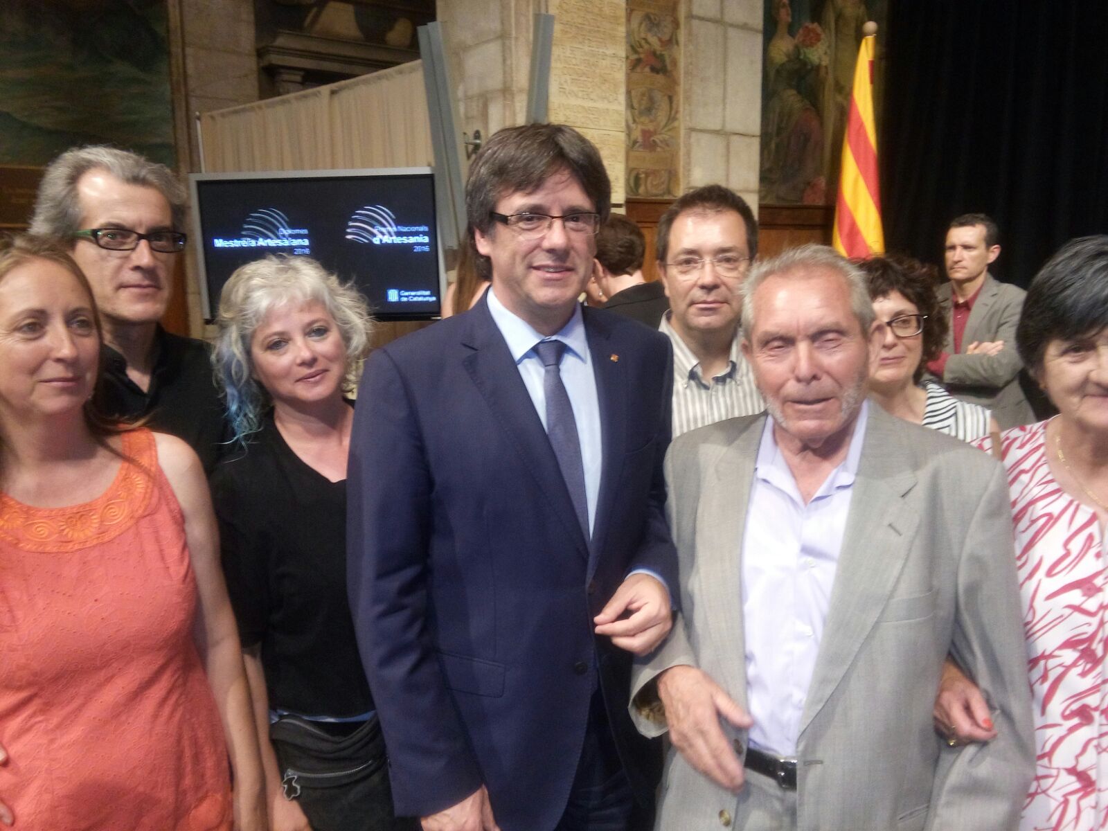 Benito Maín, veí del barri, artista i gran professional de la forja i del treball amb ferro ha rebut aquesta mateixa tarda, de les mans del president de la Generalitat, Carles Puigdemont, el premi de mestre artesa, en l’acte de lliurament dels Premis Nacionals d’Artesania.