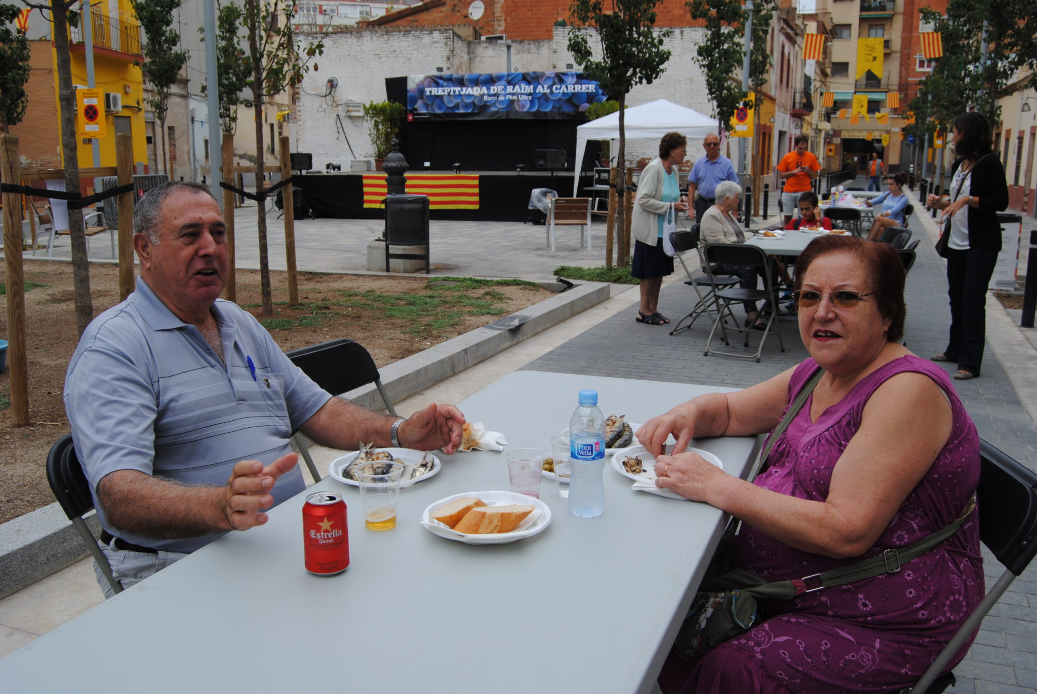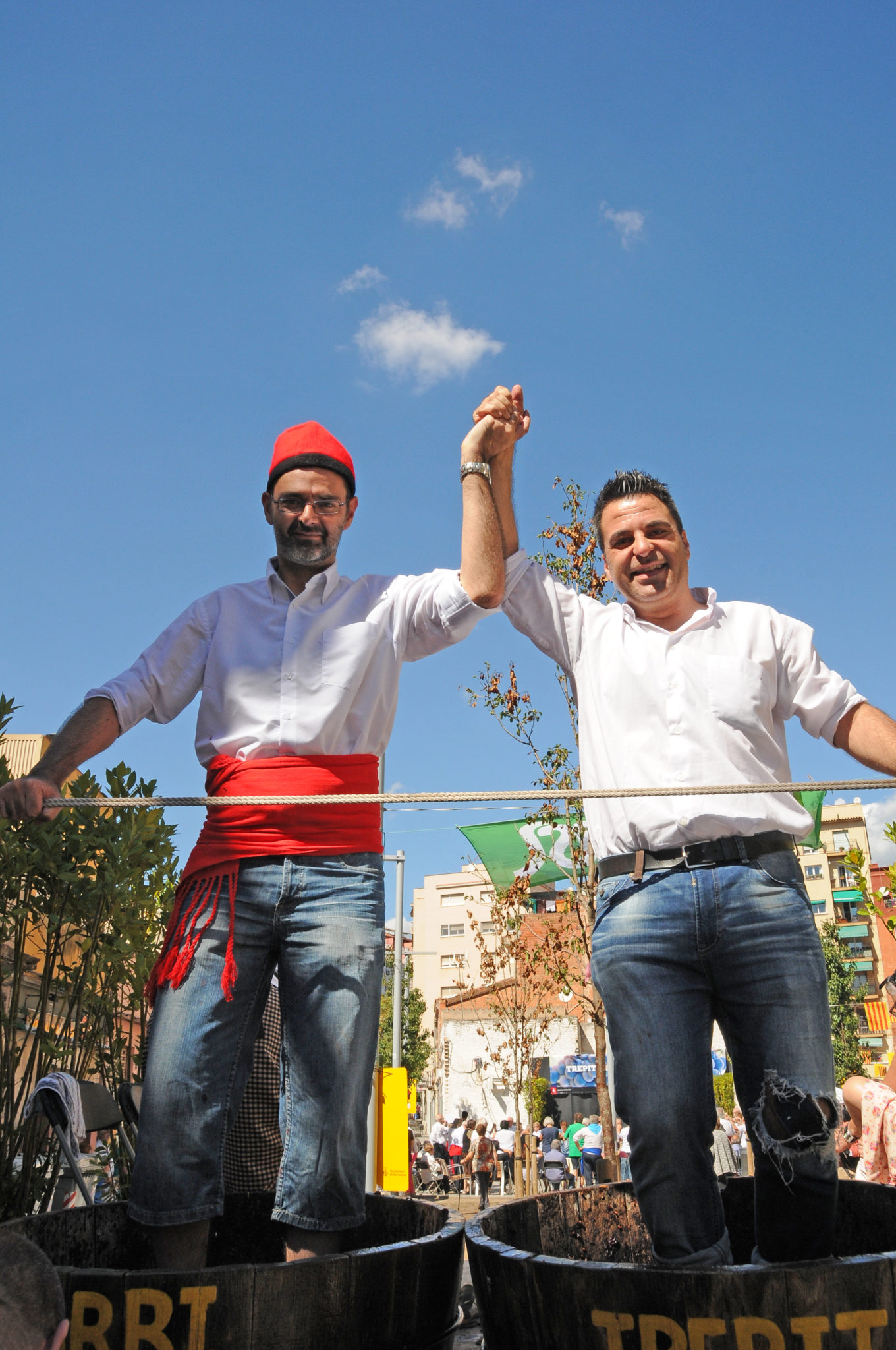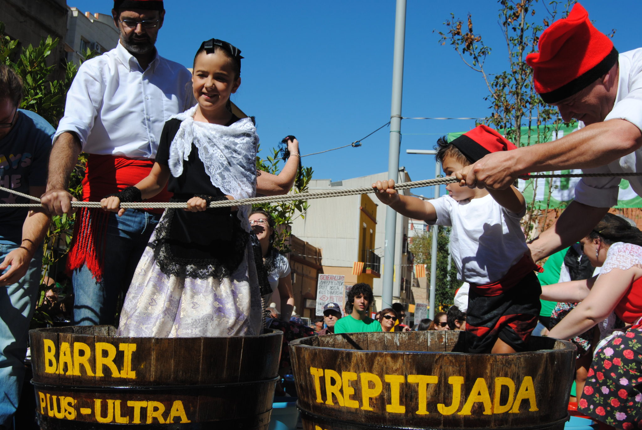 Dons ja s’ha acabat la festa del Plus Ultra i un cop més els organitzadors ( l’associació de veïns ) s’ha superat. Tot ha funcionat molt bé i la participació dels veïns és absoluta. Tothom entregat a la causa de una de les festes més maques dels barris de la Marina. Només la va deslluir una mica la pluja de dissabte al vespre que ens va deixar sense ball. El moment de la trepitjada del raïm va ser, com sempre, molt ple de gent , tant que amb prou feines es podia caminar i accedir a les taules dels artesans.