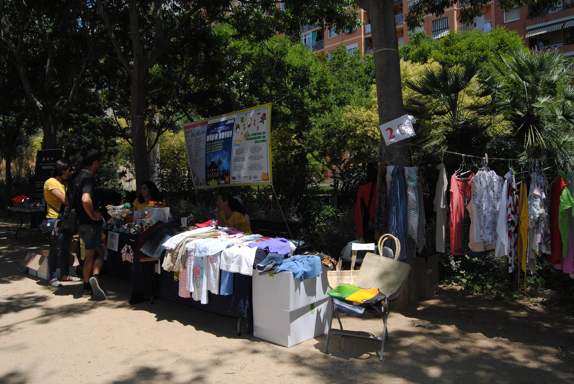 Als diferents estands es va poder apreciar els treballs que les entitats fan al llarg de l’any: tèxtils, del Centre de dones Ancora; mandales en fil, de l’Associació de Veïns de Can Clos; teixits en fil, del grup de les puntaires d’Estrelles Altes; dibuixos i activitats pels més petits, del grup d’Artistes de la Marina i de l’Escola Dominical; treballs amb material reciclable, de l’associació La Marina Viva; teixits en colors molts vius, de l’Associació Guineo-Catalana, diferents peces de roba del Centre Cultural Estrelles Altes; jocs per als més infants, de Tata Inti; i els estudis de la Marina FM en directe!