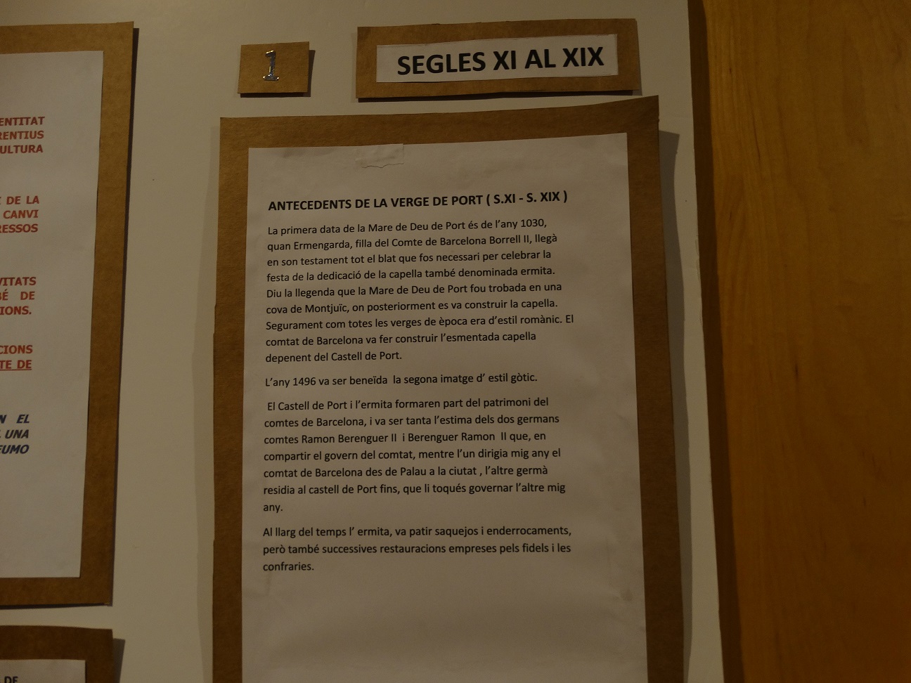 A més de poder conèixer una mica la història de la verge i la parròquia de la Marina, els assistents van poder escoltar les anècdotes que en Josep Hortet, en Manel Simó, en Julio Baños i en Josep Lluís Vicens van explicar sobre aquest edifici mil·lenari i el passat del barri. I és que la Parròquia de Mare de Déu de Port amaga entre les seves parets tantes històries com anys celebra. Ha fet d’Ateneu, de teatre, d’ espai de reunions clandestines… Com va dir un veí assistent a l’exposició: “La Parròquia ha sigut una casa d’acollida fins i tot per aquells que no tenim fe”.
