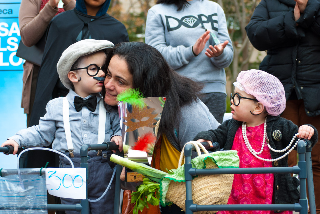 El cel, gris, desentonava davant de les disfresses de tots colors dels nens i nenes de totes les edats que van anar ocupant els Jardins a mesura que passava el matí. El concurs de disfresses, que començava oficialment a les 11:30 i incloïa una desfilada dels participants per l’escenari, va premiar l’originalitat: un Bob Esponja, un boletaire-bolet, uns ancians molt joves i molts més. A la plaça també es van veure moltes princeses, superherois i animalets: tots els disfressats haurien estat dignes guanyadors.