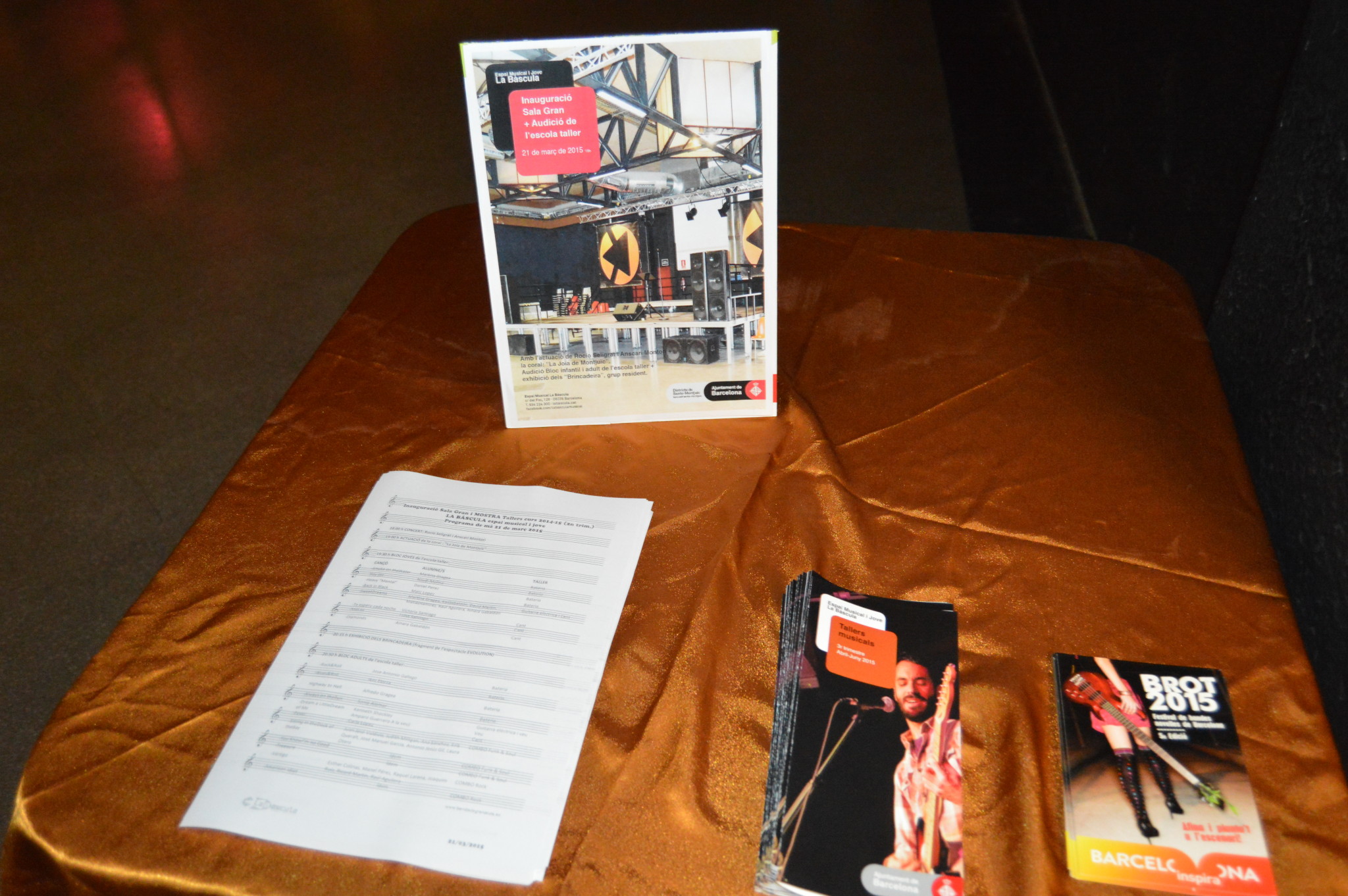 L’entrada dels assistents la iniciat gran temes clàssics versionats per Rocío Seligrat a la veu i Anscari Montori a la guitarra. La joia de Montjuïc tampoc ha faltat a l’esdeveniment amb animats temes com “paquito chocolatero” o “l’amparito roca”. Després ha sigut el torn dels més joves de l’escola taller els quals han mostrat les seves arts tocant la bateria. L’exhibició dels Brincaderia ha continuat amb l’acte que s’ha finalitzat amb les actuacions dels adults de l’escola taller.