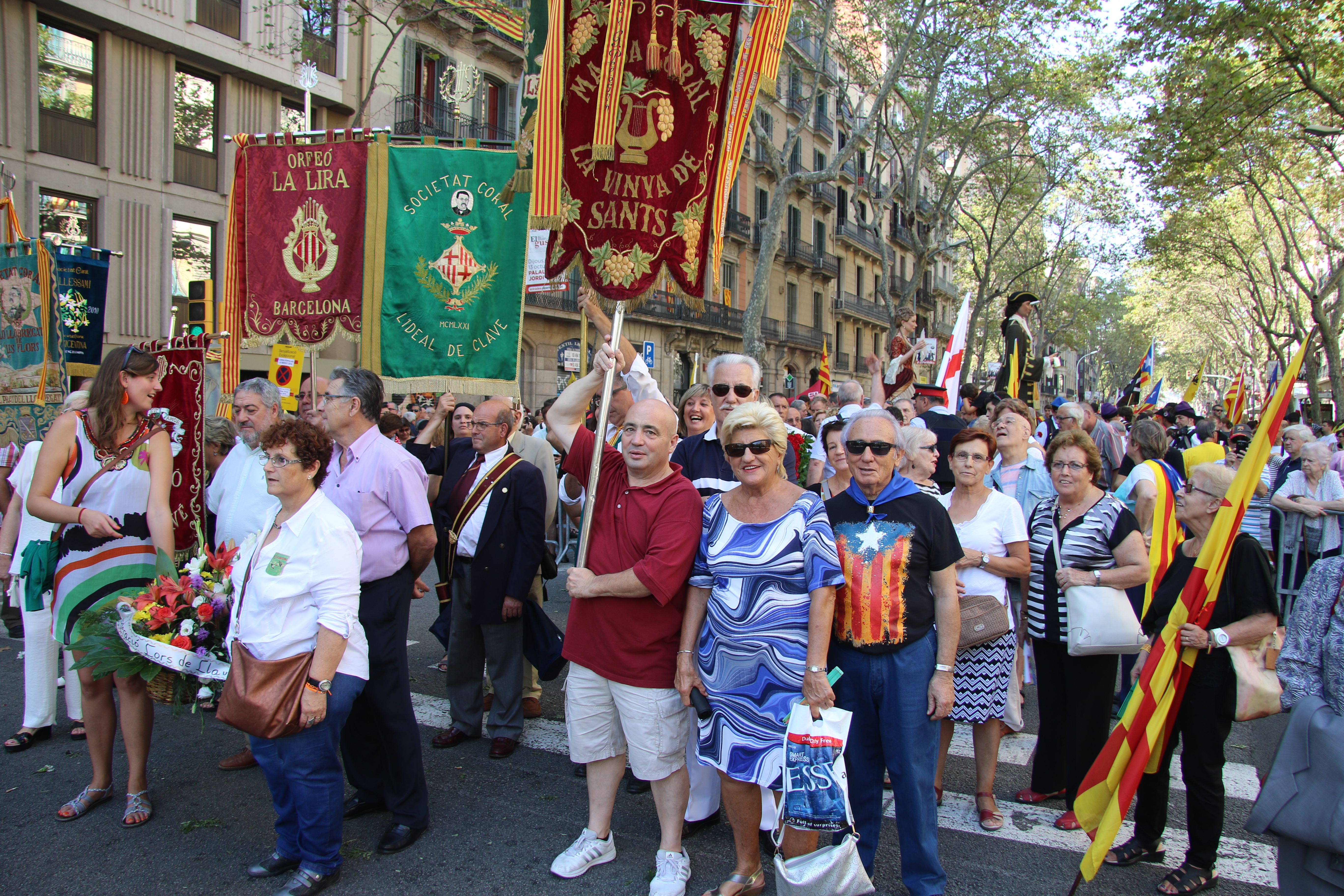 Us deixem la galeria de fotos d’ l’ofrena de les Entitats culturals al monument de Rafael de Casanovas, podem veure els cantaires de la Massa Coral Vinya de Sants, d’entre altres.