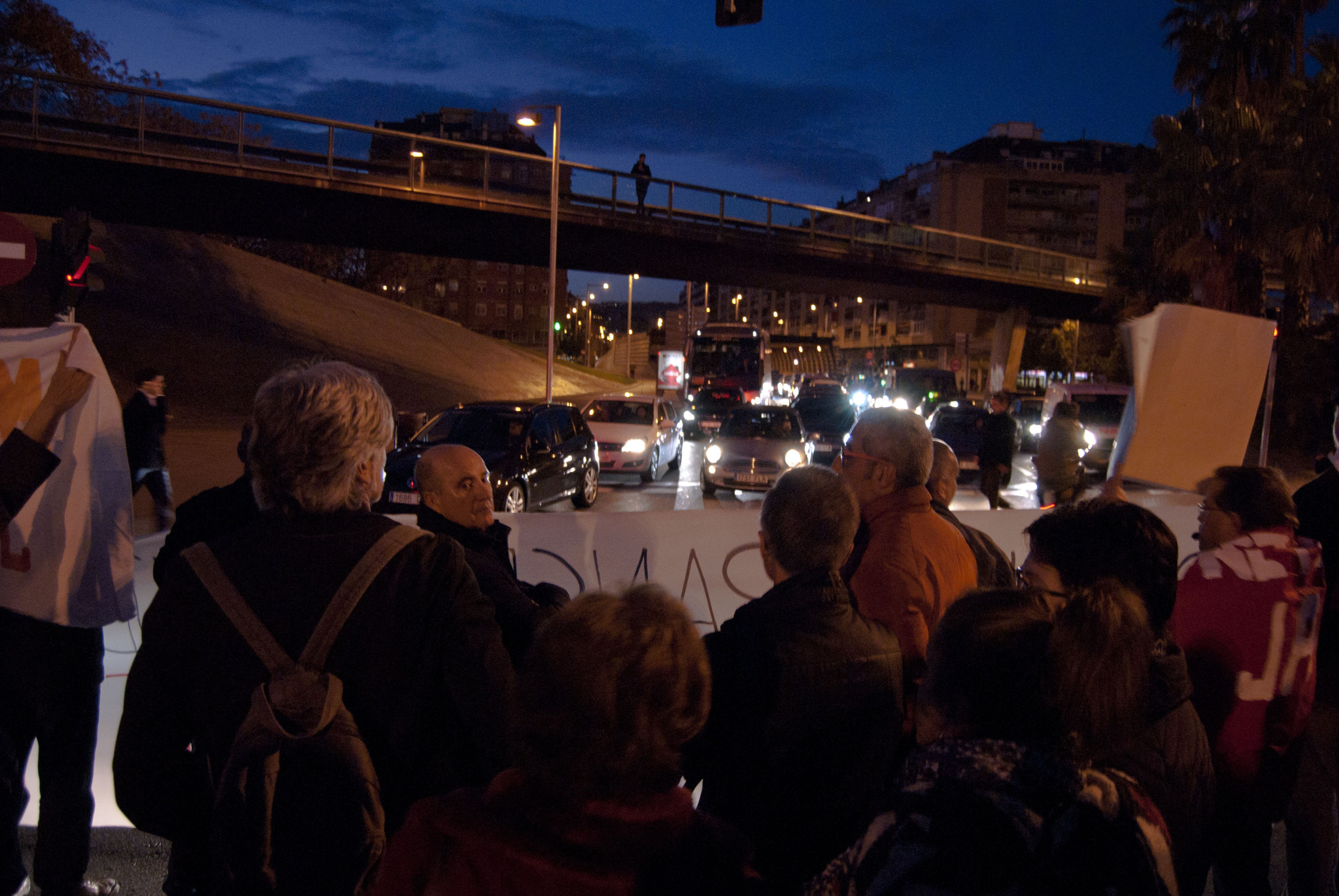 La manifestació ha engegat al passeig de la Zona Franca amb Foneria, pujant fins arribar a la plaça d’Ildefons Cerdà, la ‘primera parada’ de la protesta pel transport públic. La plaça ha estat momentàniament tallada perquè hi passessin els manifestants. Alguns vehicles, confosos, feien sonar la botzina. “¡Haber cogido el metro!”, cantaven els manifestants. Havent agafat la Gran Via, la cua ha passat per davant del centre comercial Gran Via 2, punt en què s’han començat a veure, encuriosits i fent fotografies alguns, assistents del Mobile World Congress, que se celebra aquests dies a la Fira Gran Via de l’Hospitalet. Un dels càntics més repetits de la manifestació ha estat “Queremos metro, móvil ya tenemos”. La majoria de manifestants són gent gran, com la María Teresa, que tot i comenta que no té dificultats per moure’s des de La Marina, opina que és important que hi arribi el metro, i sobretot més còmode.