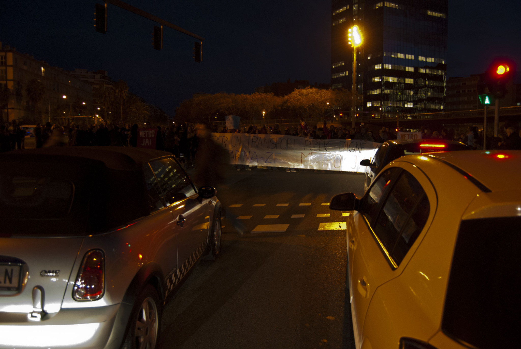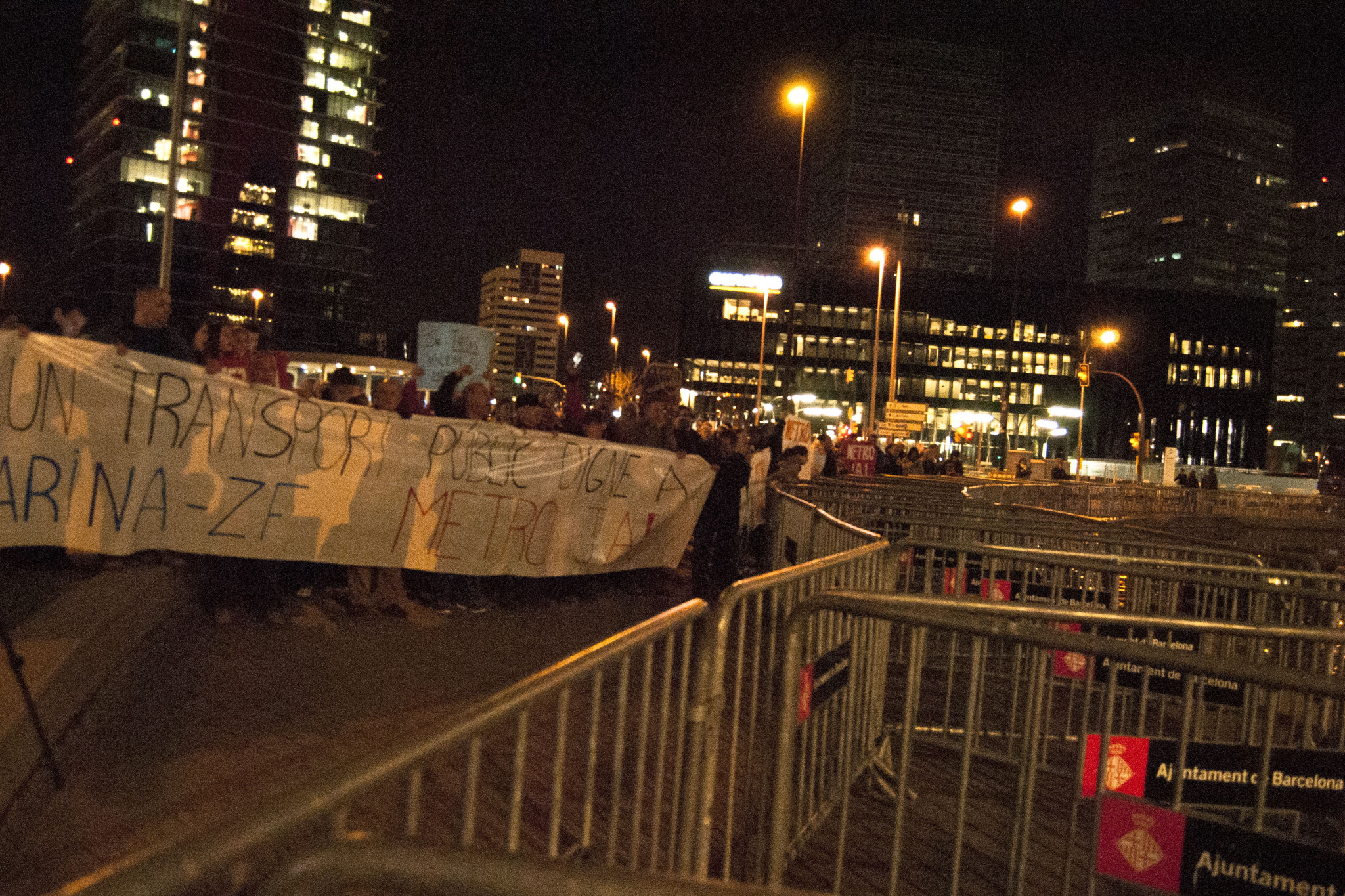JUDIT VALDÉS| Aquest vespre veïns i veïnes de la Marina han sortit als carrers en una marxa per manifestar-se per l’arribada del metro al barri. El recorregut escollit, seguint la Gran Via fins arribar a la plaça Europa de l’Hospitalet, deixava clar l’objectiu: fer-se veure. Els organitzadors, la majoria d’entitats i associacions del barri, han anunciat una segona manifestació pel metro el proper dissabte 14 de març a les 17:00 de la tarda, que esperen sigui molt més multitudinària. “El barri està infradotat en matèria de transport, hi ha els autobusos però de vegades no funcionen com haurien de funcionar”, ha comentat Antonio Guillén, president de la Unió d’Entitats, un dels organitzadors. També ha destacat la necessitat de metro per donar serveis als veïns, però també per fer de la Marina un barri amb més atracció: “Seria més fàcil que la inversió vingués al barri si tinguéssim el metro, un transport ràpid i modern”.