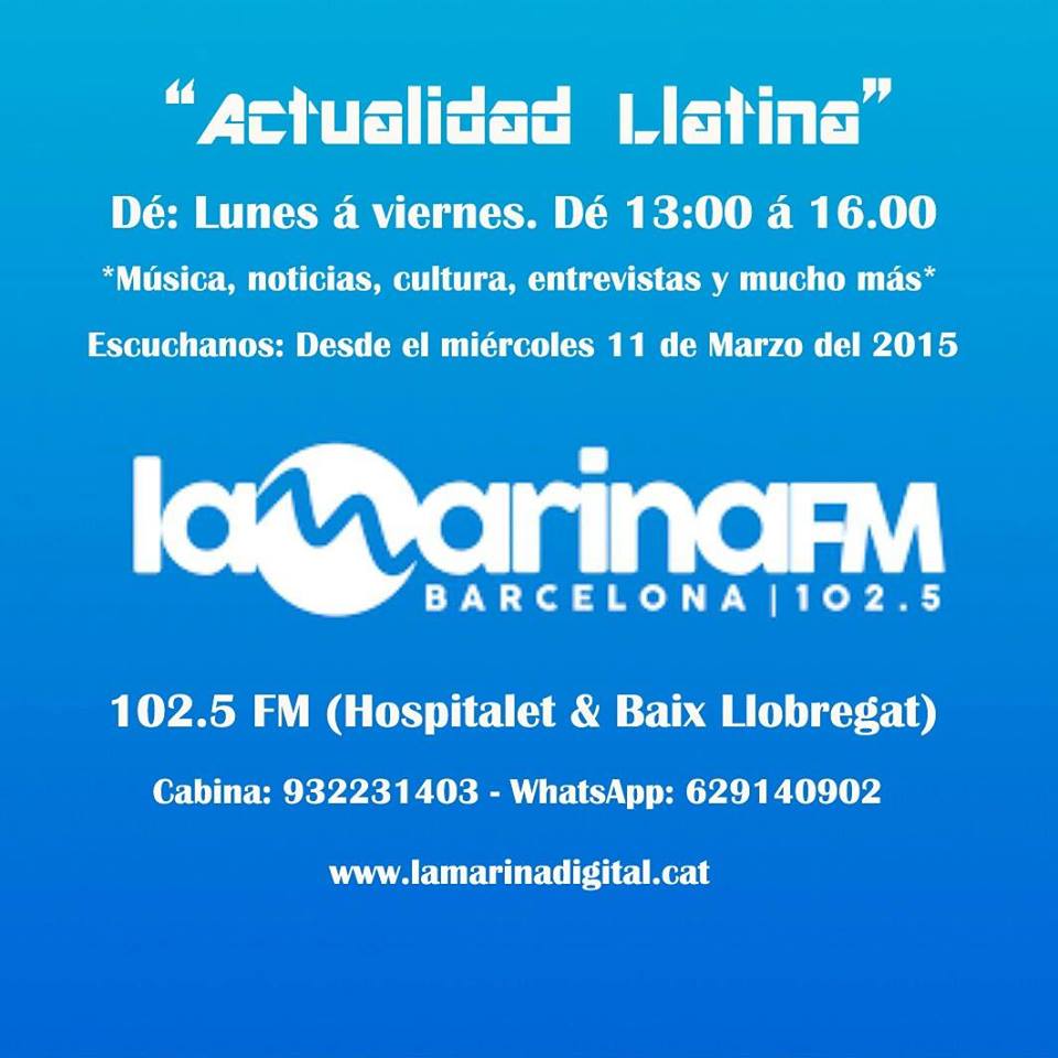 Cada dia de 13 a 16h podràs passar una bona estona amb Raquel Caizapanta i Mario Rey. “Actualidad latina” és el nou programa diari de La Marina FM on podràs estar al dia de l’actualitat, cultura i música que més t’interessa.